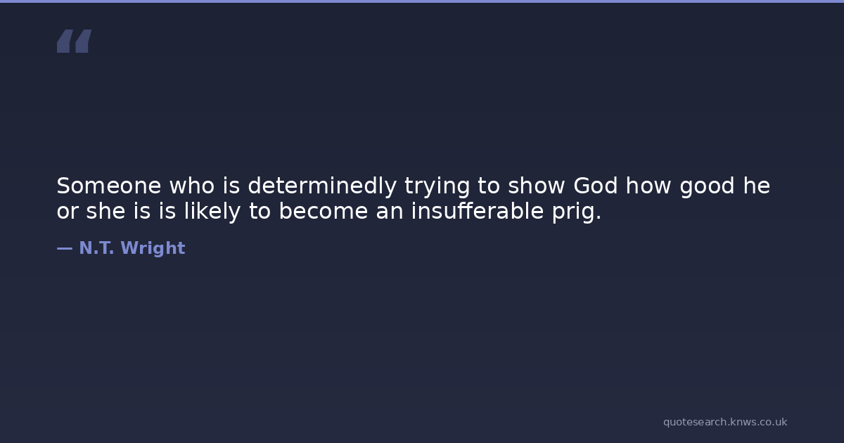 Someone who is determinedly trying to show God how good he or she is is likely to become an insufferable prig.
