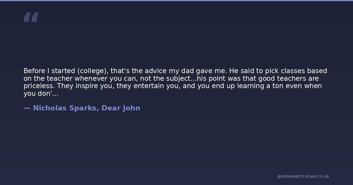 Before I started (college), that's the advice my dad gave me. He said to pick classes based on the teacher whenever you can, not the subject...his point was that good teachers are priceless. They inspire you, they entertain you, and you end up learning a ton even when you don't know it.