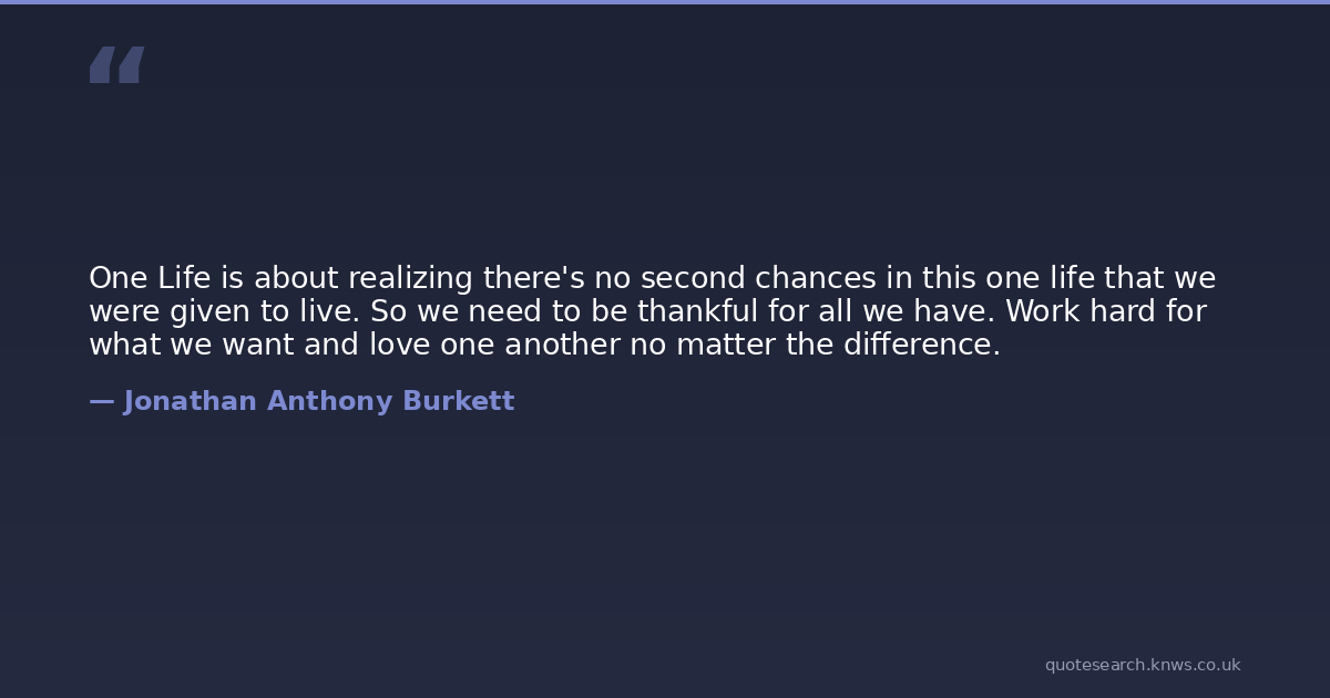 One Life is about realizing there's no second chances in this one life that we were given to live. So we need to be thankful for all we have. Work hard for what we want and love one another no matter the difference.