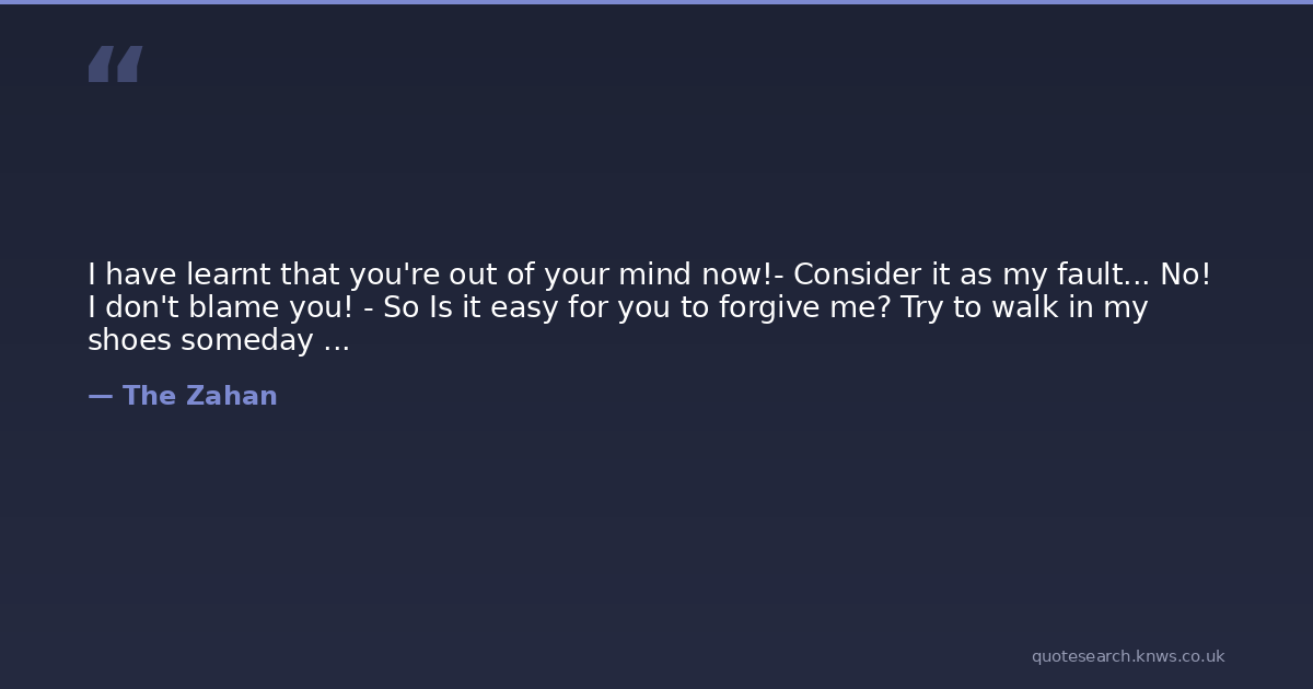 I have learnt that you're out of your mind now!- Consider it as my fault... No! I don't blame you! - So Is it easy for you to forgive me? Try to walk in my shoes someday ...