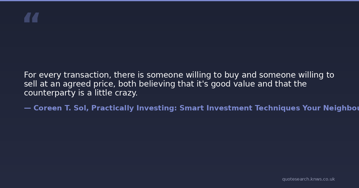 For every transaction, there is someone willing to buy and someone willing to sell at an agreed price, both believing that it's good value and that the counterparty is a little crazy.