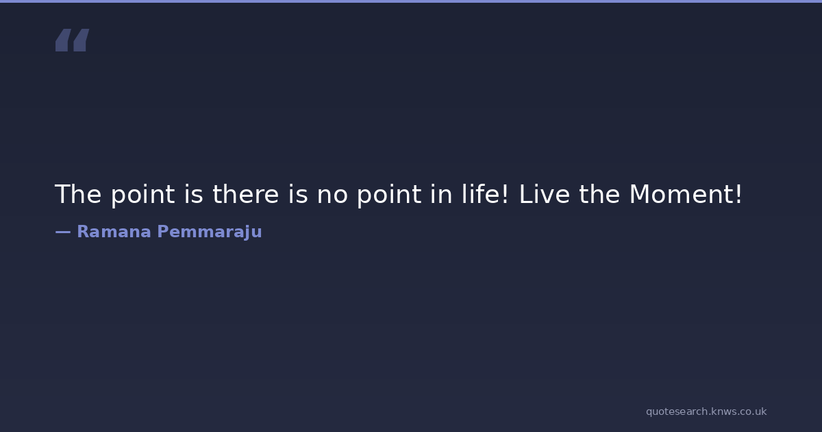 The point is there is no point in life! Live the Moment! life-lessons-quotes point-of-view psychology-quotes Download Image Share on X Share on Facebook Copy Link