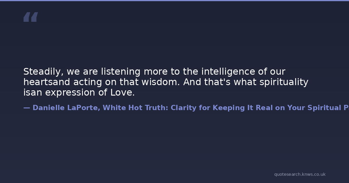 Steadily, we are listening more to the intelligence of our heartsand acting on that wisdom. And that's what spirituality isan expression of Love.