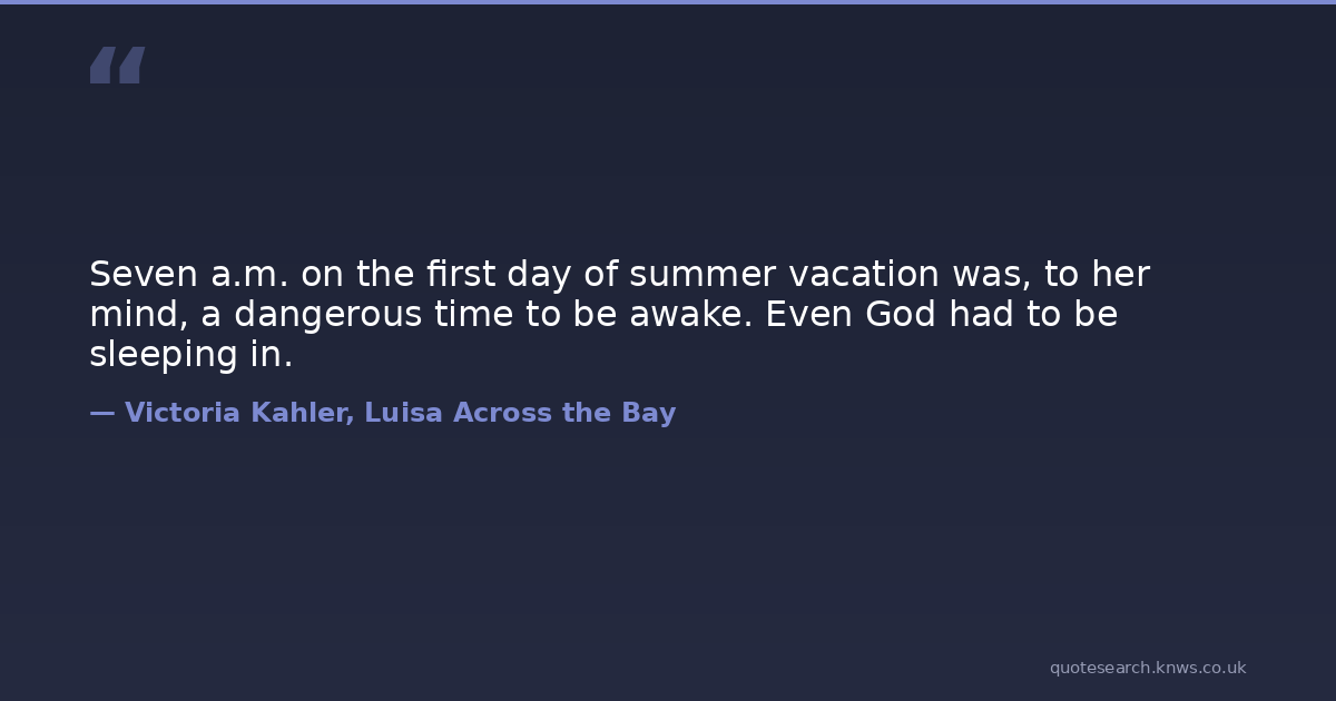 Seven a.m. on the first day of summer vacation was, to her mind, a dangerous time to be awake. Even God had to be sleeping in.