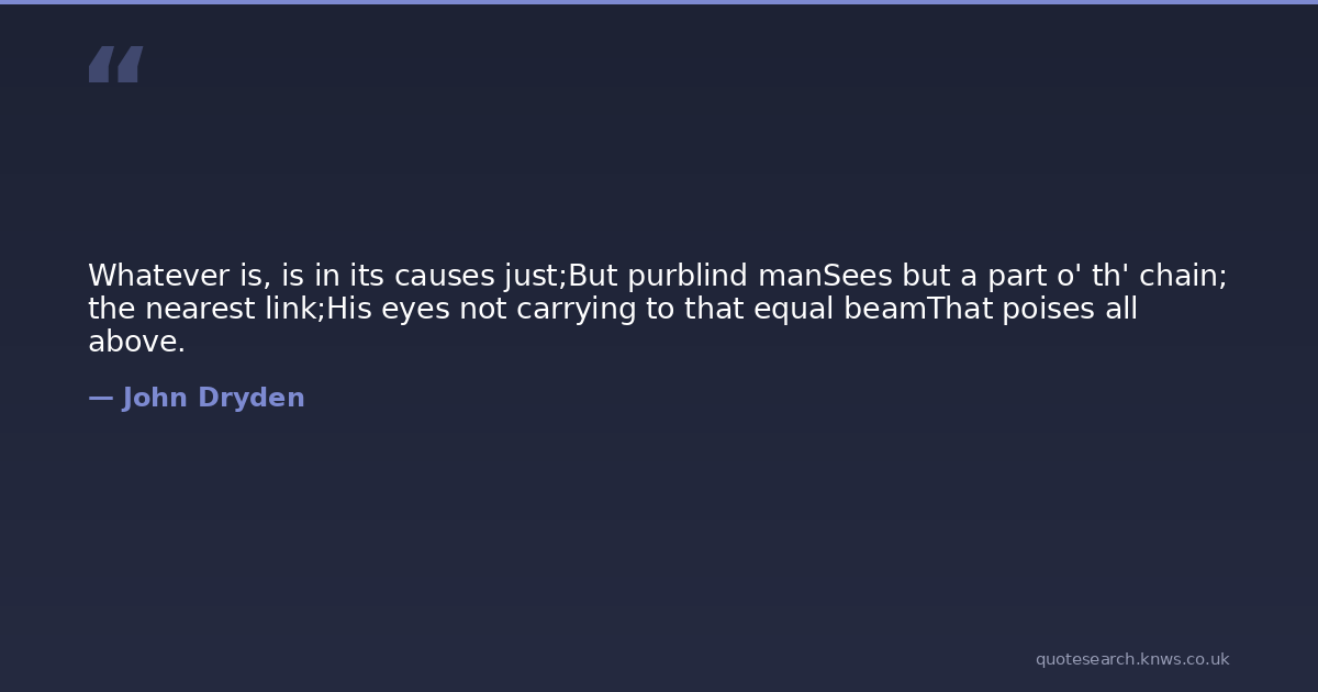 Whatever is, is in its causes just;But purblind manSees but a part o' th' chain; the nearest link;His eyes not carrying to that equal beamThat poises all above.