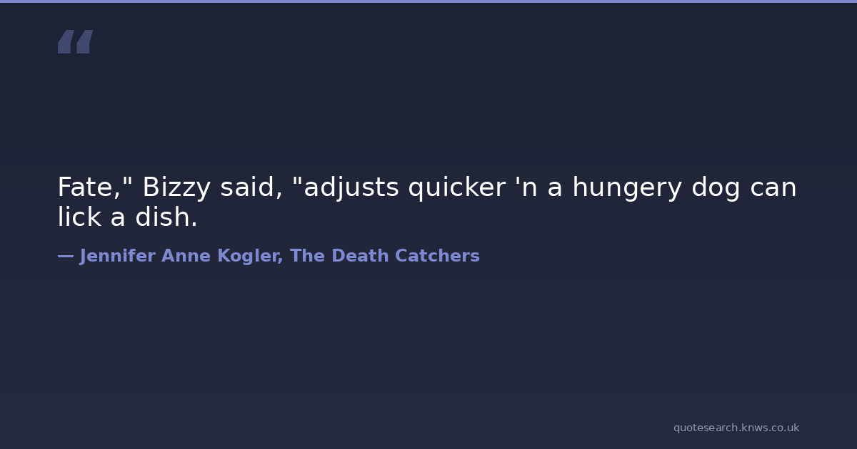 Fate," Bizzy said, "adjusts quicker 'n a hungery dog can lick a dish. dog fate Download Image Share on X Share on Facebook Copy Link