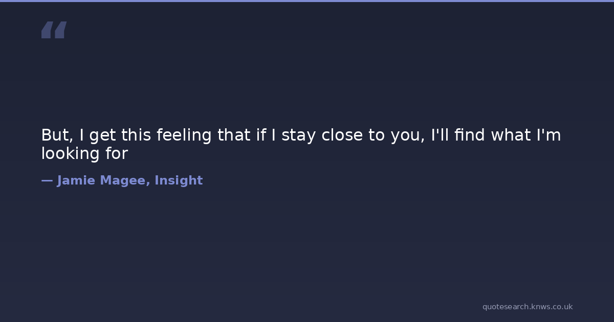 But, I get this feeling that if I stay close to you, I'll find what I'm looking for