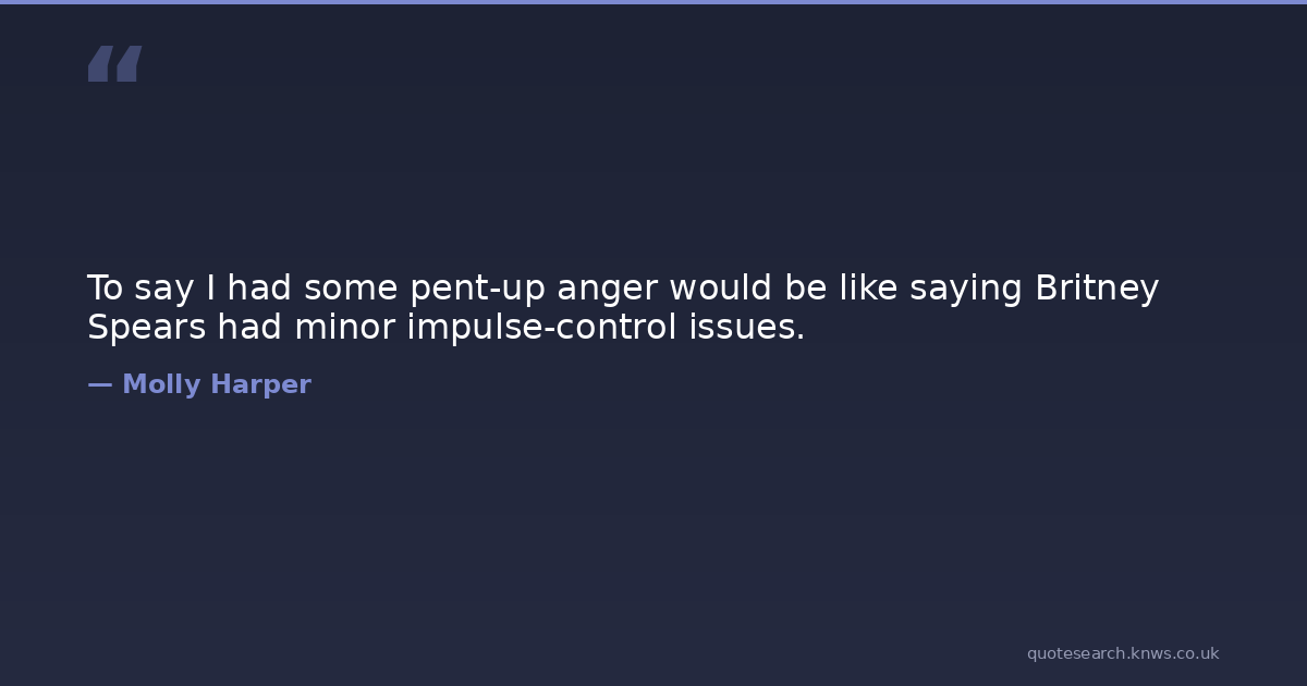 To say I had some pent-up anger would be like saying Britney Spears had minor impulse-control issues. anger humor Download Image Share on X Share on Facebook Copy Link