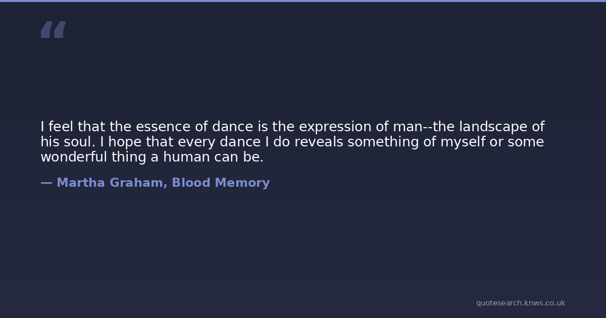 I feel that the essence of dance is the expression of man--the landscape of his soul. I hope that every dance I do reveals something of myself or some wonderful thing a human can be.