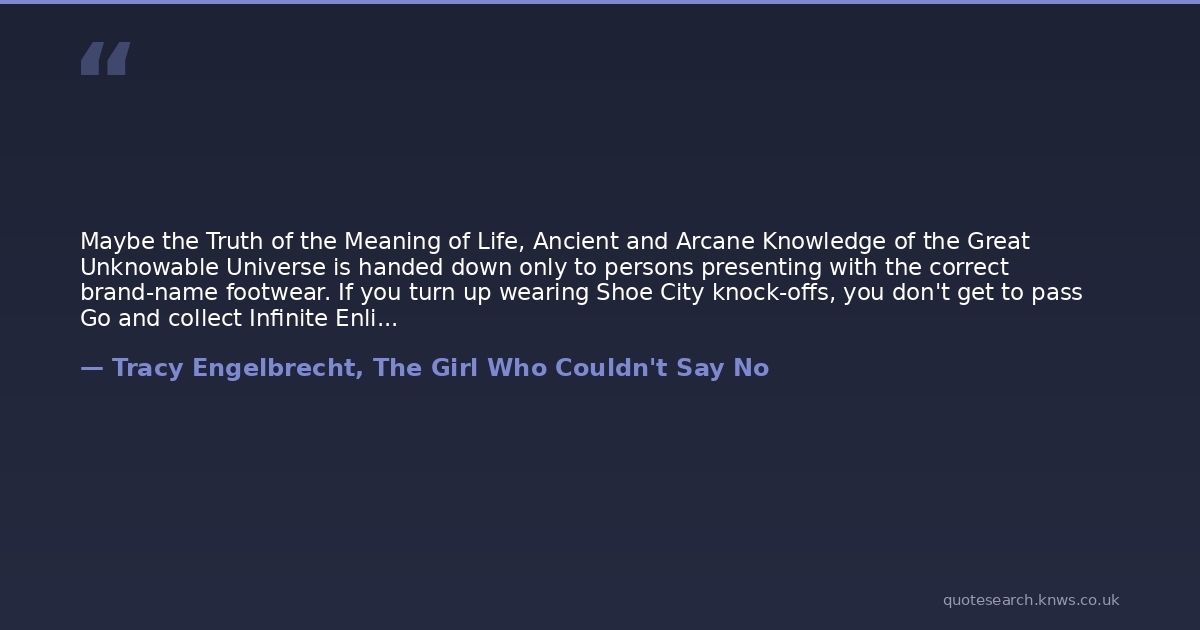 Maybe the Truth of the Meaning of Life, Ancient and Arcane Knowledge of the Great Unknowable Universe is handed down only to persons presenting with the correct brand-name footwear. If you turn up wearing Shoe City knock-offs, you don't get to pass Go and collect Infinite Enlightenment.