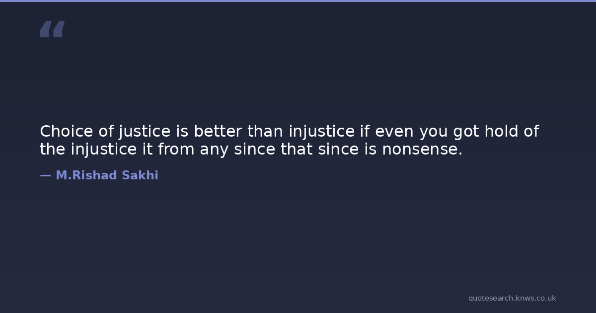 Choice of justice is better than injustice if even you got hold of the injustice it from any since that since is nonsense. justice Download Image Share on X Share on Facebook Copy Link