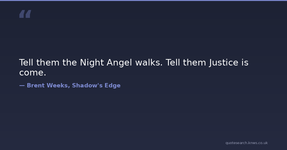 Tell them the Night Angel walks. Tell them Justice is come. assassin fantasy justice revenge Download Image Share on X Share on Facebook Copy Link