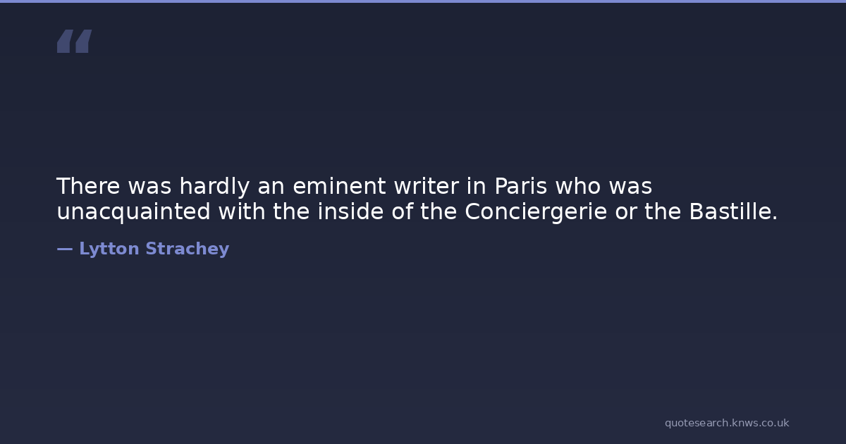 There was hardly an eminent writer in Paris who was unacquainted with the inside of the Conciergerie or the Bastille.