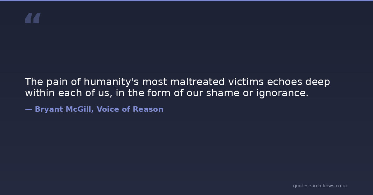 The pain of humanity's most maltreated victims echoes deep within each of us, in the form of our shame or ignorance.