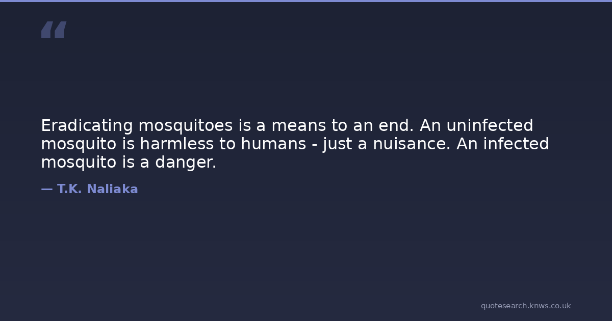 Eradicating mosquitoes is a means to an end. An uninfected mosquito is harmless to humans - just a nuisance. An infected mosquito is a danger.