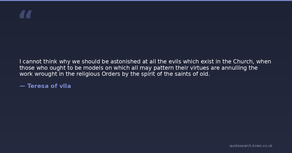 I cannot think why we should be astonished at all the evils which exist in the Church, when those who ought to be models on which all may pattern their virtues are annulling the work wrought in the religious Orders by the spirit of the saints of old.