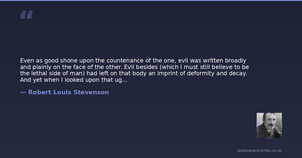 Even as good shone upon the countenance of the one, evil was written broadly and plainly on the face of the other. Evil besides (which I must still believe to be the lethal side of man) had left on that body an imprint of deformity and decay. And yet when I looked upon that ugly idol in the glass, I was conscious of no repugnance, rather of a leap of welcome. This, too, was myself.