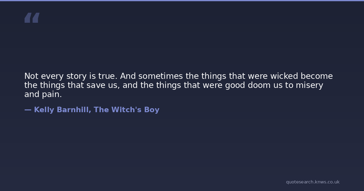 Not every story is true. And sometimes the things that were wicked become the things that save us, and the things that were good doom us to misery and pain.