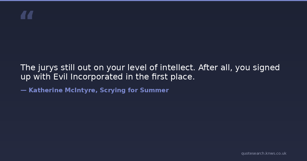 The jurys still out on your level of intellect. After all, you signed up with Evil Incorporated in the first place.