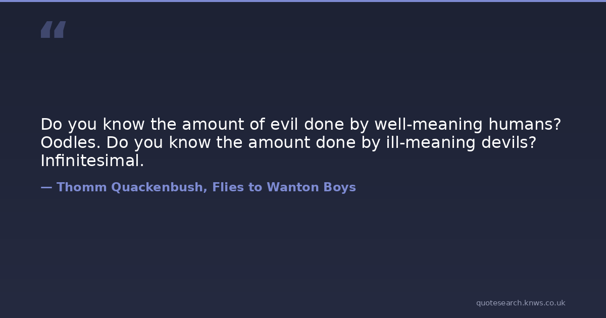 Do you know the amount of evil done by well-meaning humans? Oodles. Do you know the amount done by ill-meaning devils? Infinitesimal.
