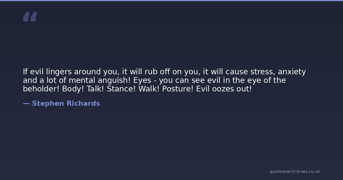 If evil lingers around you, it will rub off on you, it will cause stress, anxiety and a lot of mental anguish! Eyes - you can see evil in the eye of the beholder! Body! Talk! Stance! Walk! Posture! Evil oozes out!
