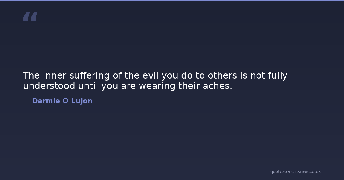 The inner suffering of the evil you do to others is not fully understood until you are wearing their aches.