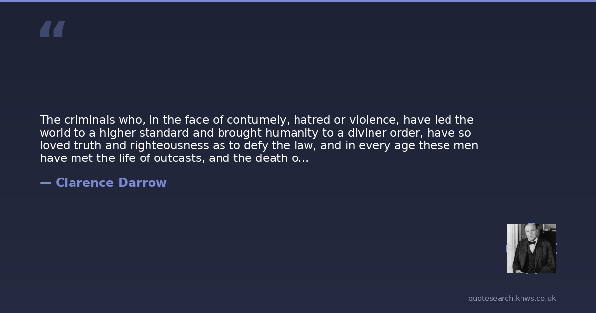 The criminals who, in the face of contumely, hatred or violence, have led the world to a higher standard and brought humanity to a diviner order, have so loved truth and righteousness as to defy the law, and in every age these men have met the life of outcasts, and the death of felons. Whatever may be said of the necessity of government to protect itself, no one can believe that any human being merits punishment for following his own highest ideal. Punishment can only be in any wise defended upon the theory that the individual is untrue to himself, that his heart is bad. But all schemes of human punishment seem specially contrived to exempt this class of men. Those who are untrue to themselves find no difficulty in obeying the state, or at least in seeming to be subservient to its laws. The cunning man without strong convictions of right and wrong can always find ample room to operate his trade inside the dead line the law lays down. Even Blackstone wrote that a man who governed his conduct solely by the law was neither an honest man nor a good citizen. The penal code cannot pretend to cover all the vicious acts of men. If there is a distinction between vicious acts and righteous acts, each are so numerous that even to catalogue them would be beyond the power of the state.