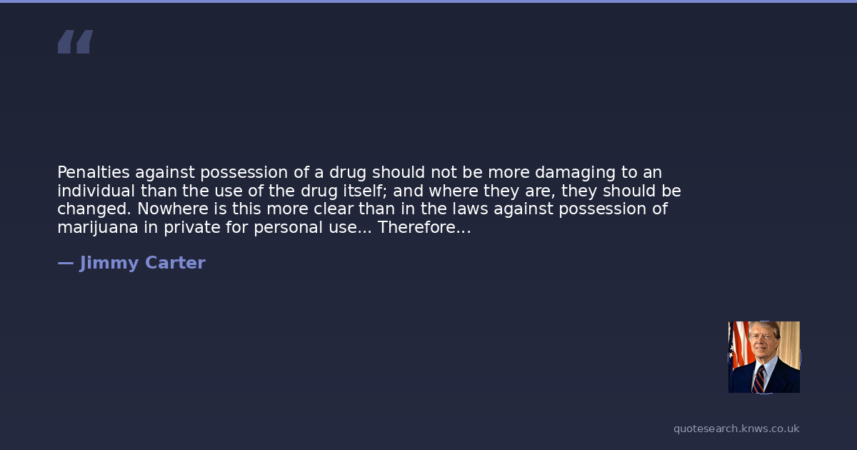 Penalties against possession of a drug should not be more damaging to an individual than the use of the drug itself; and where they are, they should be changed. Nowhere is this more clear than in the laws against possession of marijuana in private for personal use... Therefore, I support legislation amending Federal law to eliminate all Federal criminal penalties for the possession of up to one ounce [28g] of marijuana.