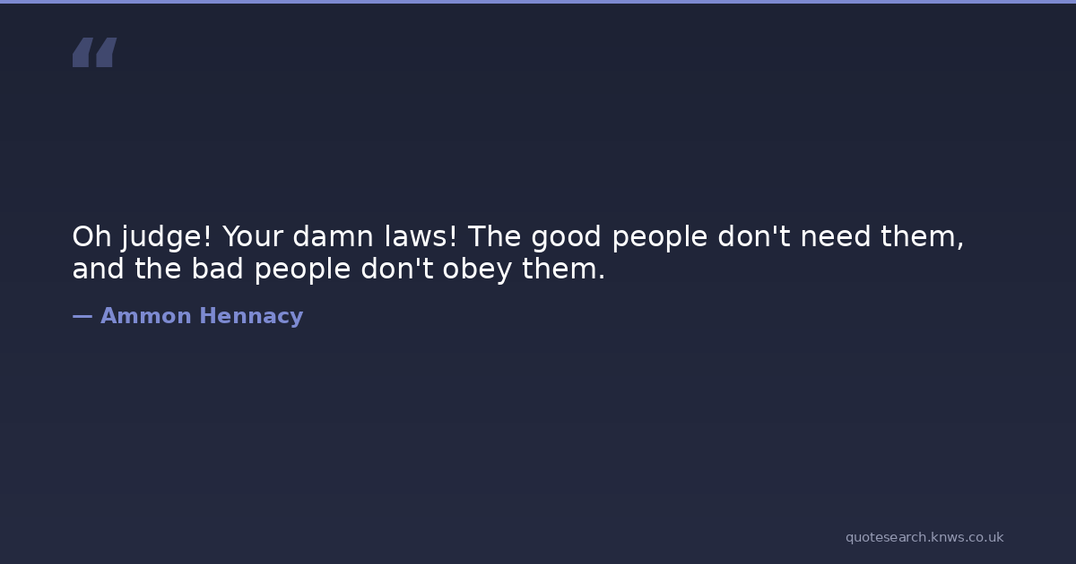 Oh judge! Your damn laws! The good people don't need them, and the bad people don't obey them. courts law laws Download Image Share on X Share on Facebook Copy Link