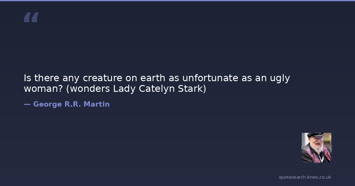 Is there any creature on earth as unfortunate as an ugly woman? (wonders Lady Catelyn Stark)