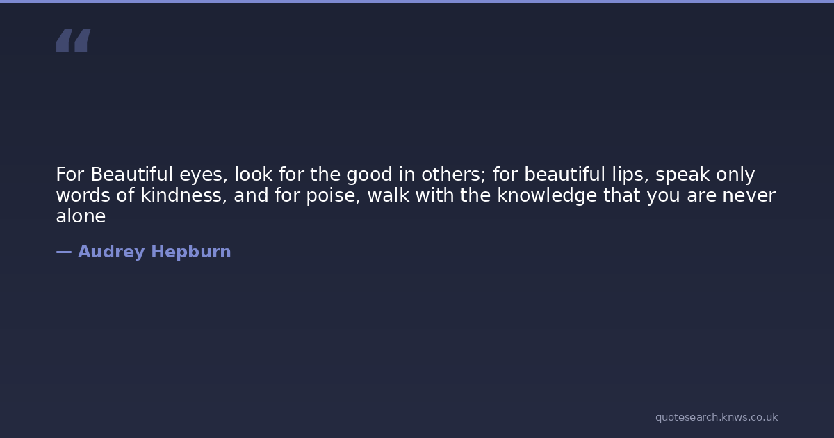 For Beautiful eyes, look for the good in others; for beautiful lips, speak only words of kindness, and for poise, walk with the knowledge that you are never alone