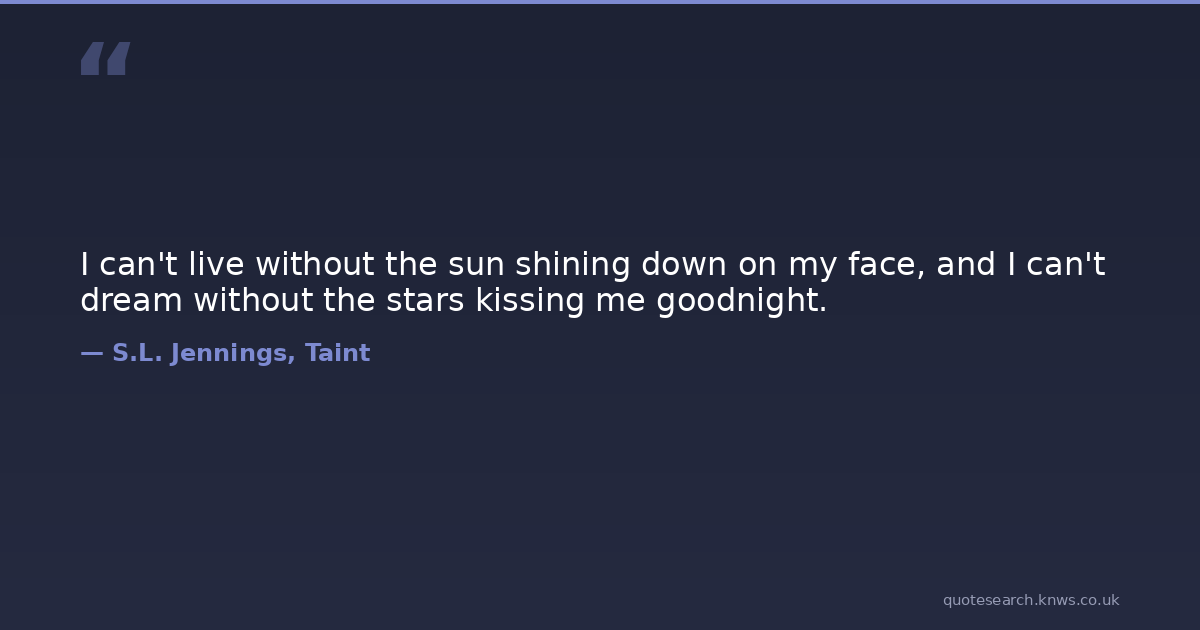 I can't live without the sun shining down on my face, and I can't dream without the stars kissing me goodnight.