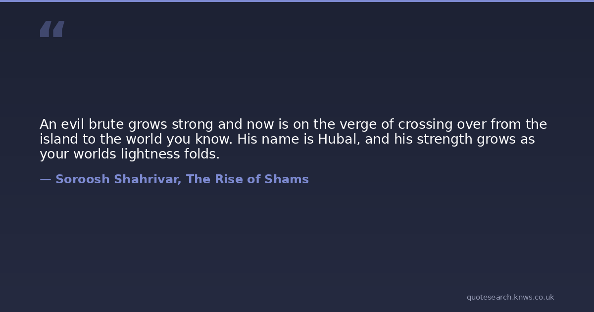 An evil brute grows strong and now is on the verge of crossing over from the island to the world you know. His name is Hubal, and his strength grows as your worlds lightness folds.
