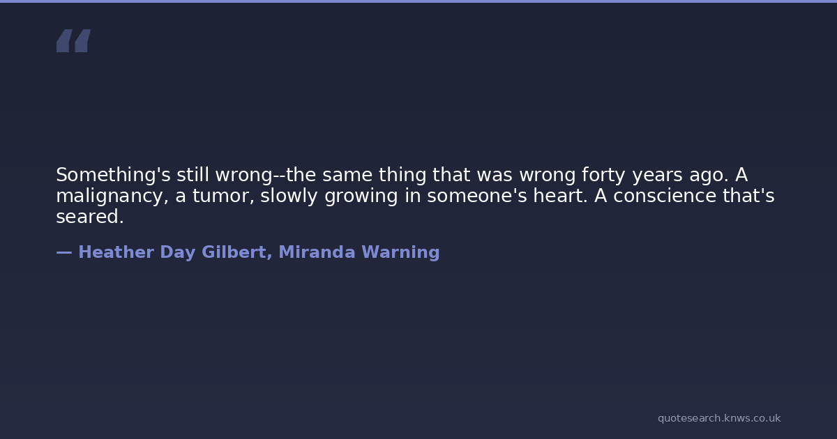 Something's still wrong--the same thing that was wrong forty years ago. A malignancy, a tumor, slowly growing in someone's heart. A conscience that's seared.