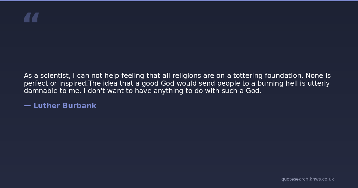 As a scientist, I can not help feeling that all religions are on a tottering foundation. None is perfect or inspired.The idea that a good God would send people to a burning hell is utterly damnable to me. I don't want to have anything to do with such a God.