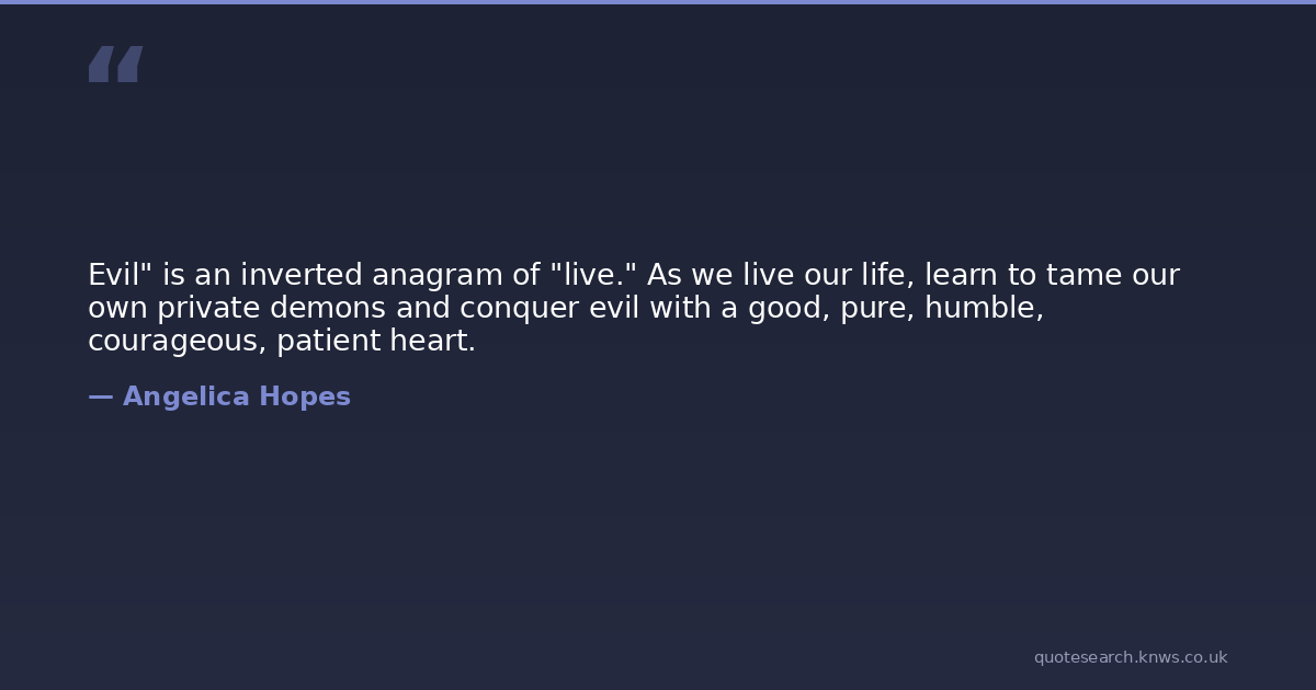 Evil" is an inverted anagram of "live." As we live our life, learn to tame our own private demons and conquer evil with a good, pure, humble, courageous, patient heart.