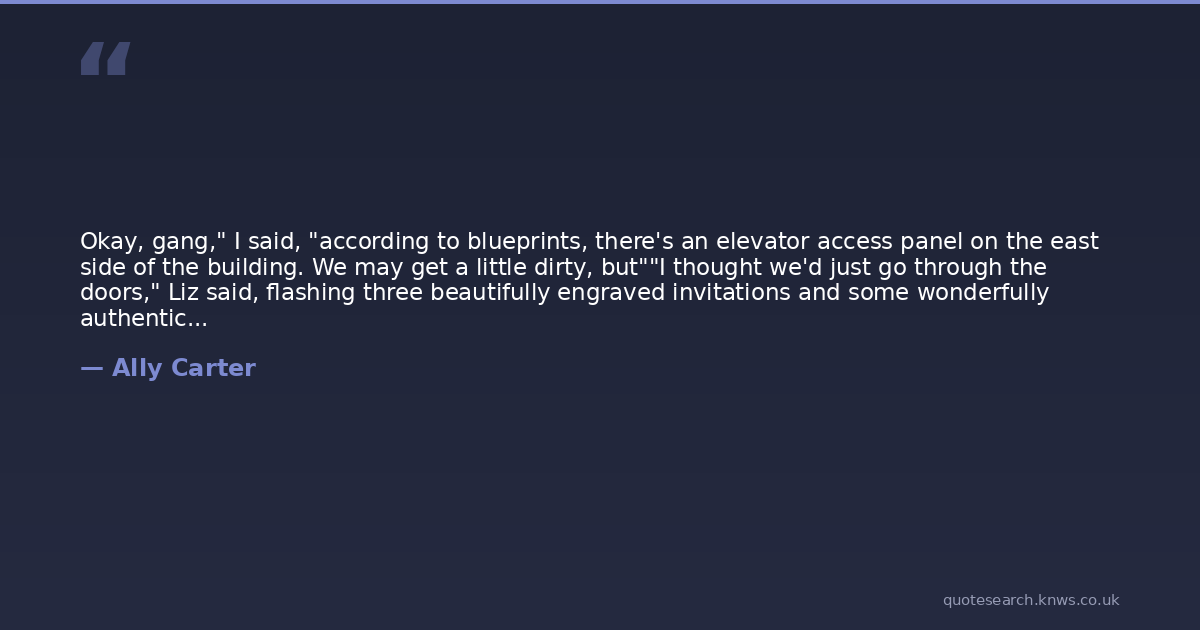 Okay, gang," I said, "according to blueprints, there's an elevator access panel on the east side of the building. We may get a little dirty, but""I thought we'd just go through the doors," Liz said, flashing three beautifully engraved invitations and some wonderfully authentic fake IDs.The tickets were $20,000 each. The Secret Service had been vetting the guest list for weeks, so Bex and I stopped beneath a streetlamp and studied Liz."Do I even want to know where you got those?" I asked.Liz seemed to ponder it, and then she said, "No.