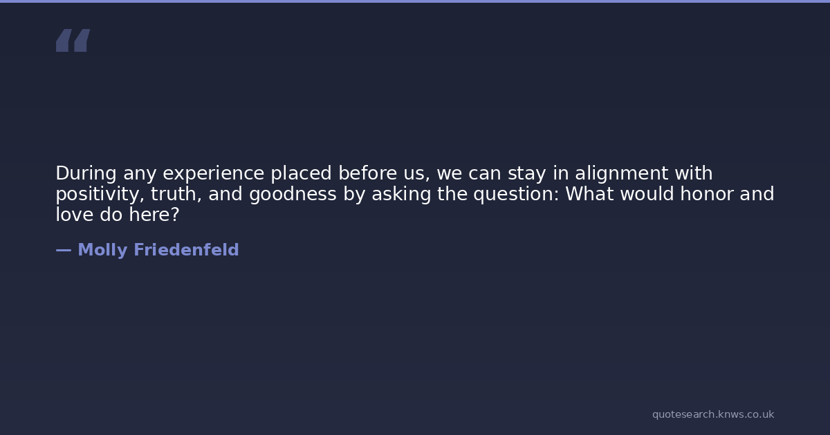 During any experience placed before us, we can stay in alignment with positivity, truth, and goodness by asking the question: What would honor and love do here?