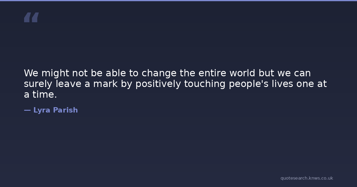 We might not be able to change the entire world but we can surely leave a mark by positively touching people's lives one at a time.