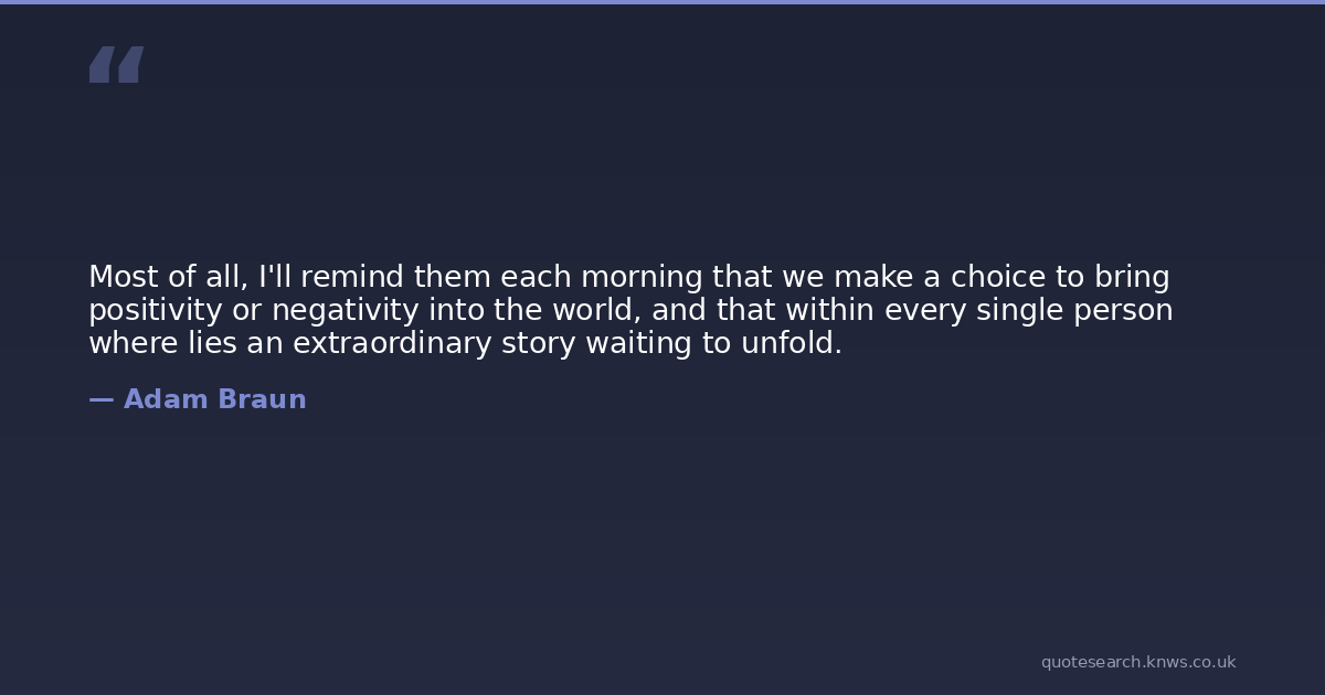 Most of all, I'll remind them each morning that we make a choice to bring positivity or negativity into the world, and that within every single person where lies an extraordinary story waiting to unfold.