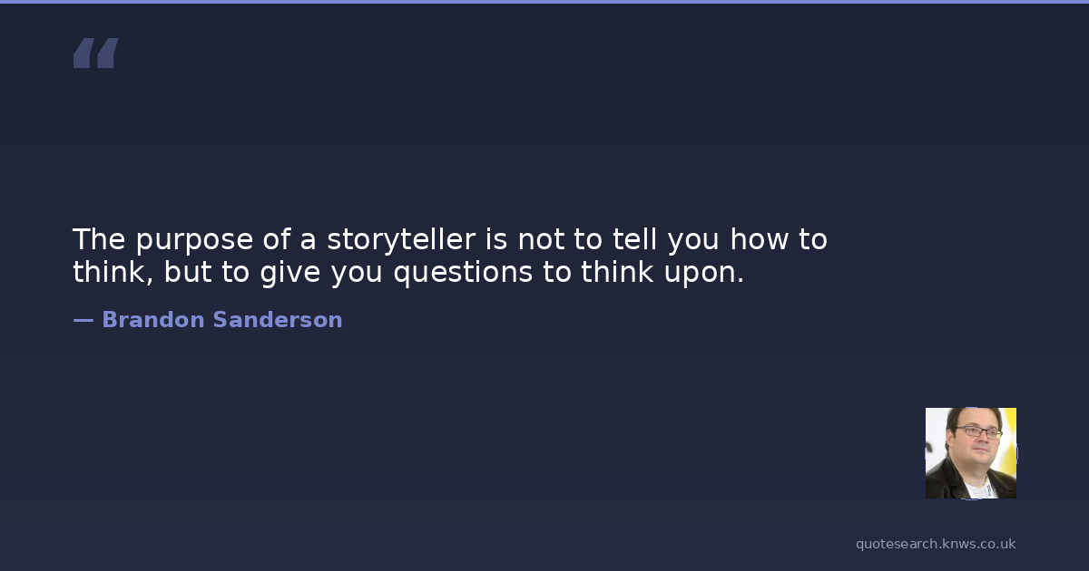 The purpose of a storyteller is not to tell you how to think, but to give you questions to think upon.