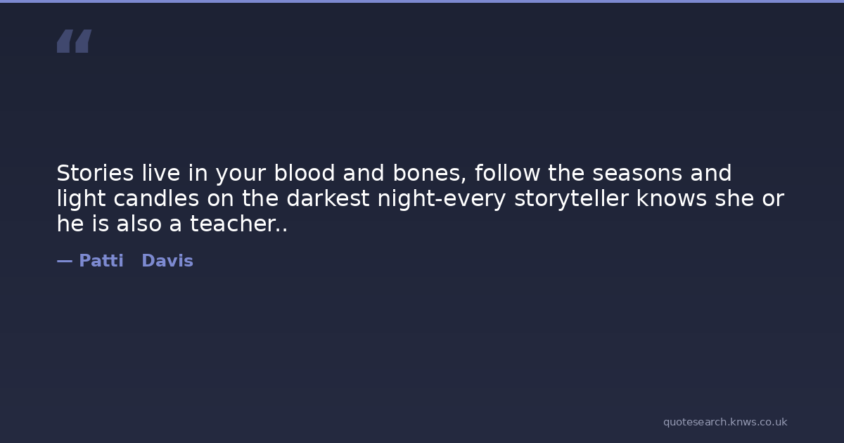 Stories live in your blood and bones, follow the seasons and light candles on the darkest night-every storyteller knows she or he is also a teacher..