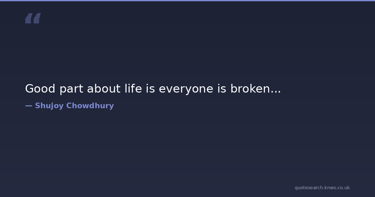 Good part about life is everyone is broken... broken broken-heart everyone good life Download Image Share on X Share on Facebook Copy Link