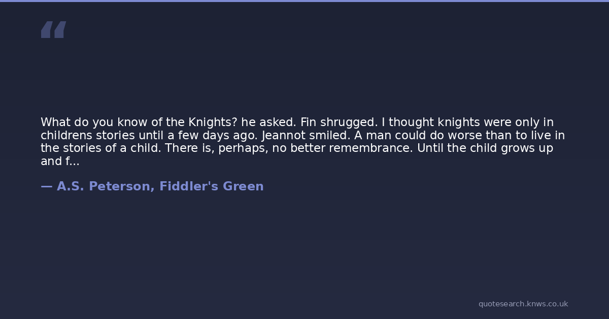 What do you know of the Knights? he asked. Fin shrugged. I thought knights were only in childrens stories until a few days ago. Jeannot smiled. A man could do worse than to live in the stories of a child. There is, perhaps, no better remembrance. Until the child grows up and finds out the stories arent true. You might be knights, but I dont see any shining armor, Fin said. Jeannot stopped near the gate of the auberge and faced her. Each time a story is told, the details and accuracies and facts are winnowed away until all that remains is the heart of the tale. If there is truth at the heart of it, a tale may live forever. As a knight, there is no dragon to slay, no maiden to rescue, and no miraculous grail to uncover. A knight seeks the truth beneath these things, seeks the heart. We call this the corso. The path set before us. The race we must run.