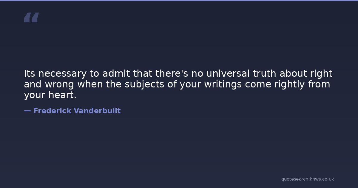 Its necessary to admit that there's no universal truth about right and wrong when the subjects of your writings come rightly from your heart.