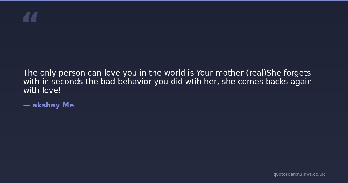 The only person can love you in the world is Your mother (real)She forgets with in seconds the bad behavior you did wtih her, she comes backs again with love!