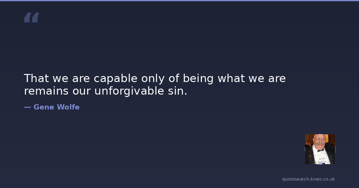 That we are capable only of being what we are remains our unforgivable sin.