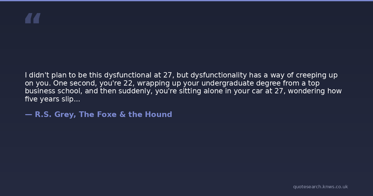 I didn't plan to be this dysfunctional at 27, but dysfunctionality has a way of creeping up on you. One second, you're 22, wrapping up your undergraduate degree from a top business school, and then suddenly, you're sitting alone in your car at 27, wondering how five years slipped trough your fingers without so much as a blink.