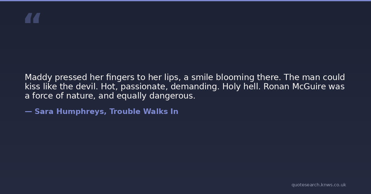 Maddy pressed her fingers to her lips, a smile blooming there. The man could kiss like the devil. Hot, passionate, demanding. Holy hell. Ronan McGuire was a force of nature, and equally dangerous.