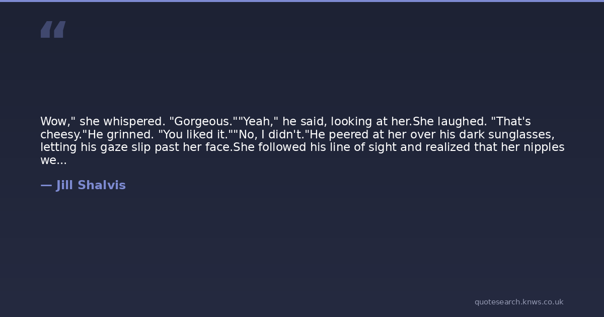 Wow," she whispered. "Gorgeous.""Yeah," he said, looking at her.She laughed. "That's cheesy."He grinned. "You liked it.""No, I didn't."He peered at her over his dark sunglasses, letting his gaze slip past her face.She followed his line of sight and realized that her nipples were pressing eagerly against the thin white cotton of her shirt. "That's because I'm cold," she said and crossed her arms over her chest.He laughed. "It's seventy five degrees.""Downright chilly," she said, nose in the air.Grinning, he reeled her in, and with Thor (the dog) protesting between them, he kissed the living daylights out of her.